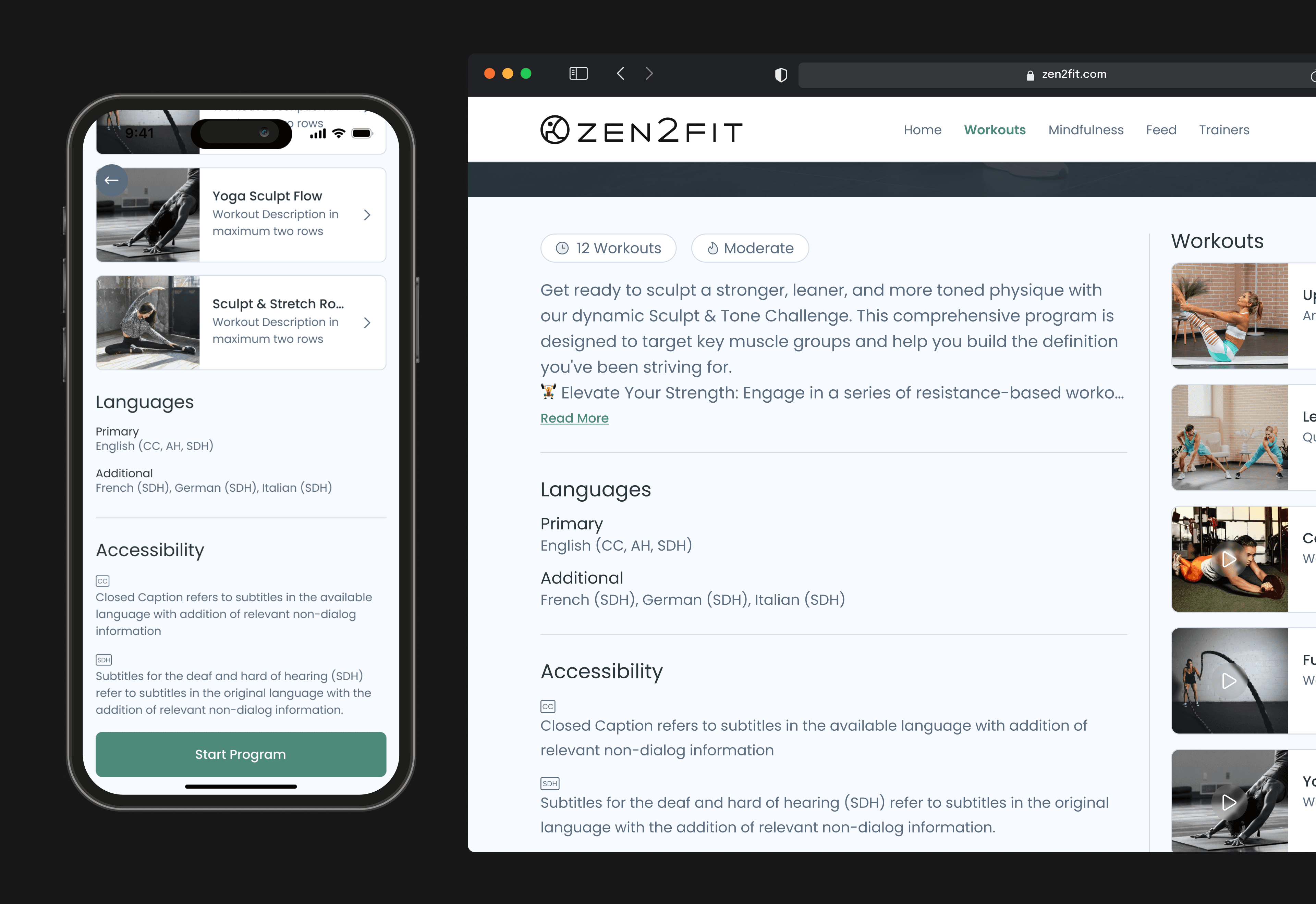Zen2Fit is a personalized fitness video coaching app that needed a full redesign. Users were dropping off because the experience felt generic — workouts weren't tailored, navigation was cluttered, and accessibility was an afterthought. We redesigned the app to deliver a personalized, accessible fitness experience that keeps users engaged from onboarding through their daily routine.